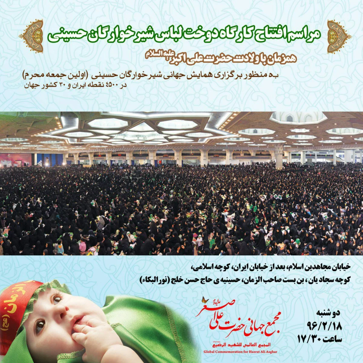 مراسم افتتاح کارگاه دوخت لباس شیرخوارگان حسینی همزمان با ولادت حضرت علی اکبر (ع) به منظور برگزاری همایش جهانی شیرخوارگان حسینی برگزار گردید